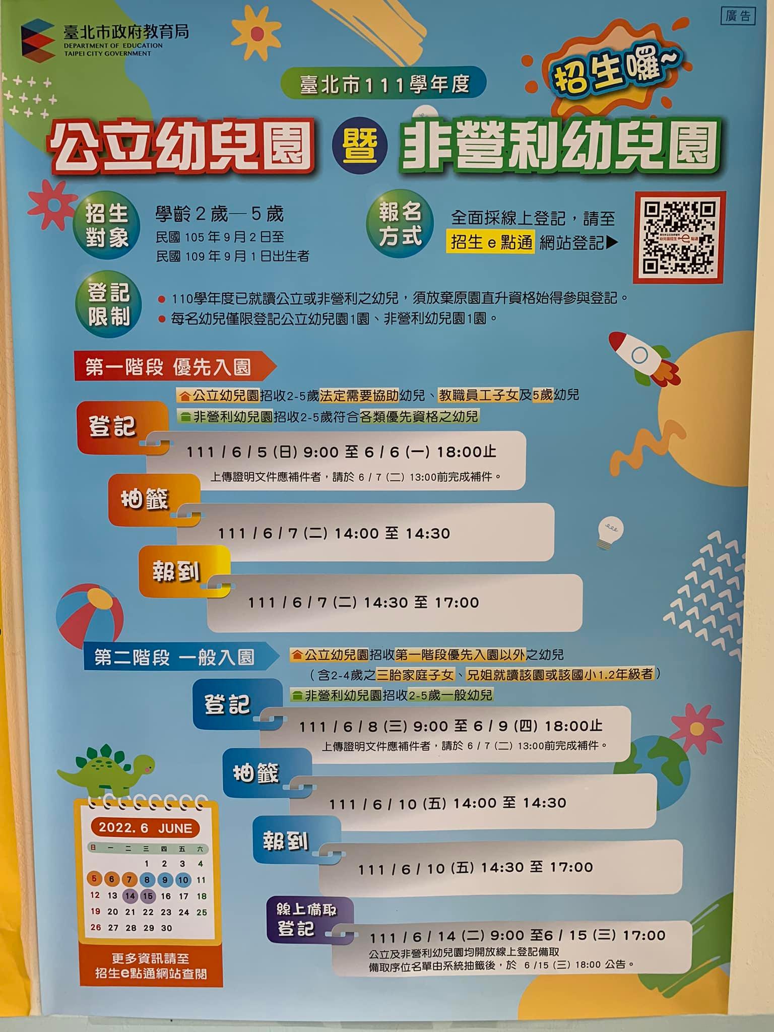 111學年度公立及非營利招生